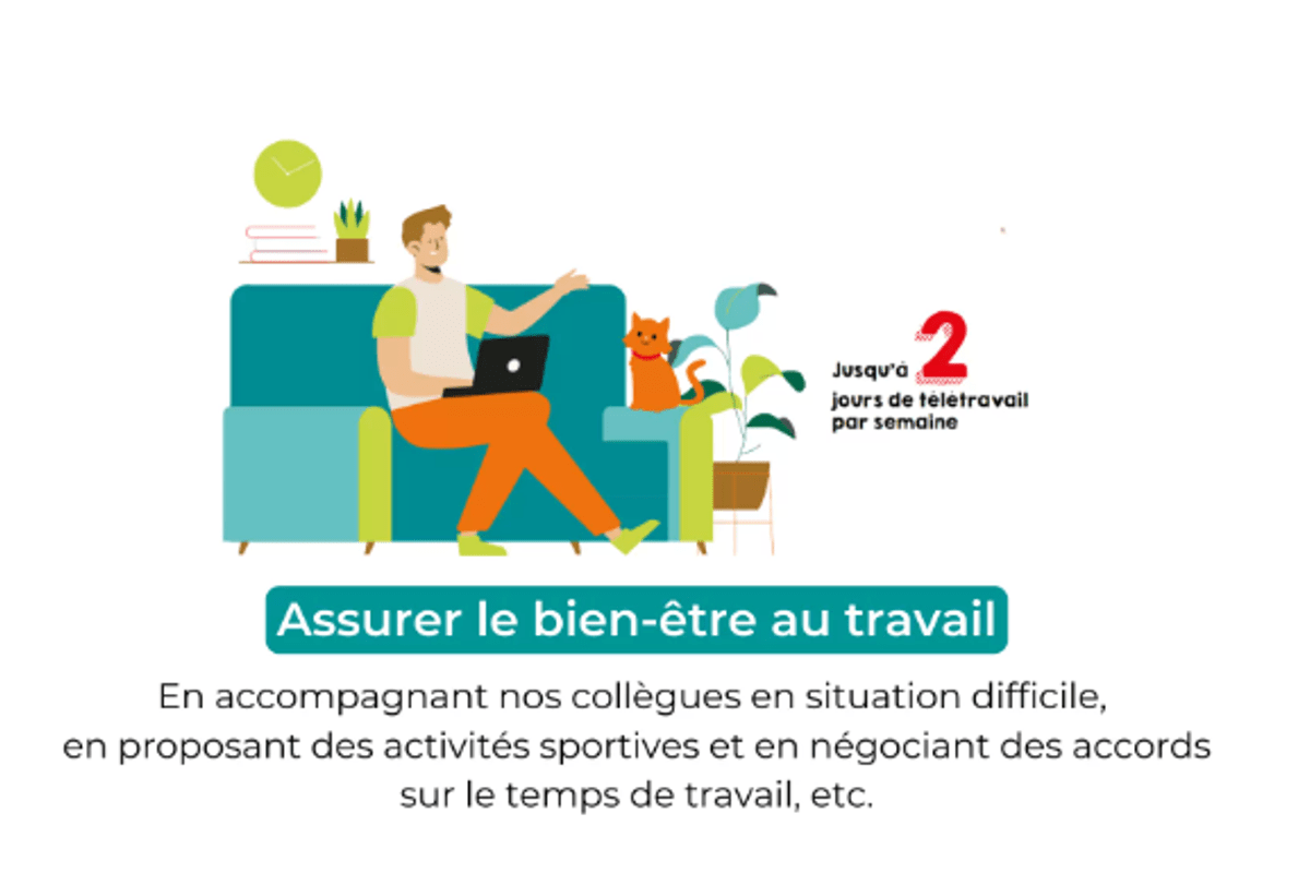 Le bien-être de nos collaborateurs est une priorité. Nous mettons en œuvre diverses initiatives pour garantir un environnement de travail sain et empreint de considération, où chacun peut s’épanouir et donner le meilleur de lui-même.